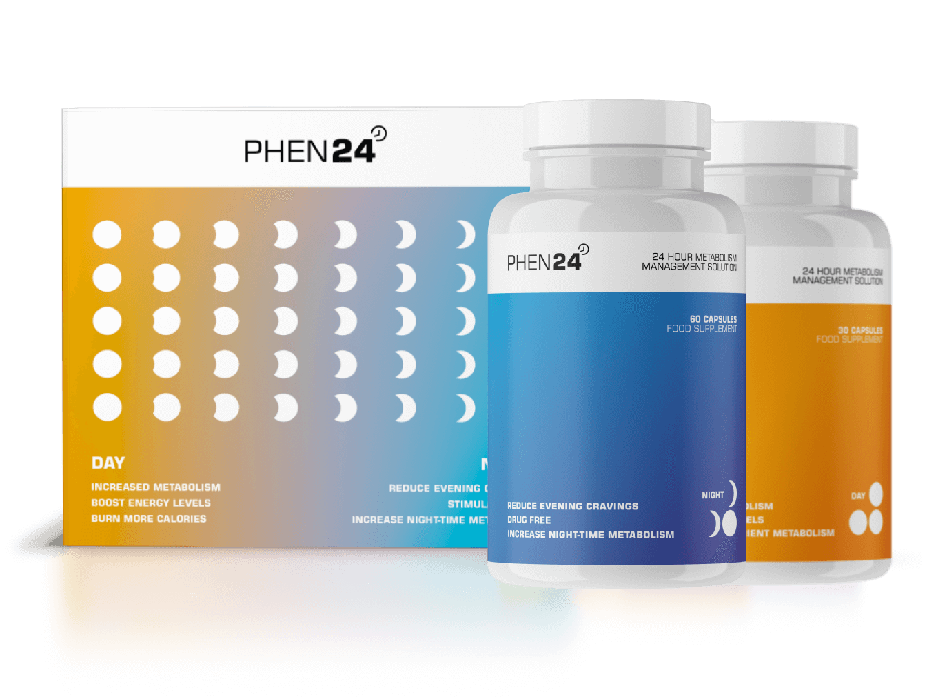 PHEN24 DAY sollte jeden Morgen gemeinsam mit dem Frühstück eingenommen werden. Von PHEN24 NIGHT müssten Sie 4 Kapseln nehmen, die 15 Minuten vor dem Abendessen gemeinsam mit 1 bis 2 Gläsern Wasser eingenommen werden sollten. Da PHEN24 NIGHT keine stimulierenden Substanzen enthält, wird Ihr Schlaf nicht beeinträchtigt werden.